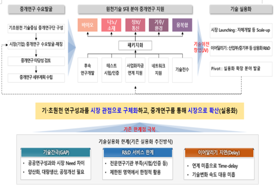 과기정통부는 주로 기초·원천연구를 지원하고 있어 창출된 대부분의 연구성과(기술성숙도 4단계 이하)를 시장에서 원하는 수준(기술성숙도 7단계 이상)까지 성숙시키는 후속 지원 방안이 절실한 상황이었다.