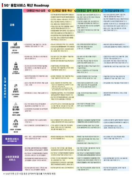 우리나라도 5세대(5G)+ 전략(‘19.4월)에 따라 스마트공장·자율주행차·실감콘텐츠·디지털 헬스케어·스마트시티의 5대 핵심서비스를 중심으로 시범·실증 사업을 추진하여 5세대(5G)+ 융합서비스의 기반을 조성 중이다.