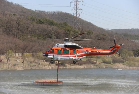 헬기에 의한 산불진화 시 염분농도가 높은 담수지에서 담수할 경우 기체와 엔진이 염분으로 부식되어 결함이나 고장의 원인이 될 수 있어 염분도 지역에서 담수 후에는 반드시 엔진세척을 하고 있다.