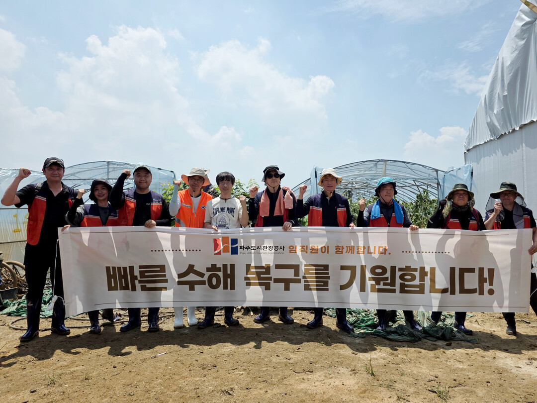 파주도시관광공사(이하 공사)는 최근 충남 예산군에서 발생한 집중호우 피해 복구를 위해 봉사활동에 참여했다.