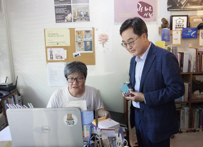 민생회복 소비쿠폰을 지역화폐로 지급 받은 김 지사는 수원페이 실물카드로 책값을 결제했다. 김 지사는 정 대표에게 “경기가 너무 어렵고 민생이 힘든데 정부가 어려운 분들을 위해 민생회복 소비쿠폰을 나눠드렸다. 소비진작도 할겸 현장에서 제가 직접 써보려고 왔다”면서 “책을 사니까 더 좋다. 소비쿠폰도 쓰고 좋아하는 책도 사고 두 배로 기쁘다”고 말했다.