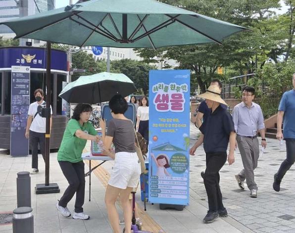 이번 사업은 구가 지난 6월 현장실사와 자율방재단 간담회를 거쳐 유동인구가 많은 양재역, 예술의전당, 이수역, 서래골공원, 양재천 수변무대 등 5곳이 운영 장소로 선정됐다. 이곳 5곳에는 각 장소별로 하루 600병씩 하루 총 3,000병의 생수가 제공된다. 특히 구는 지역 내 슈퍼마켓과 협약을 통해 생수를 구매해 지역경제 활성화에도 힘을 보탠다는 계획이다.