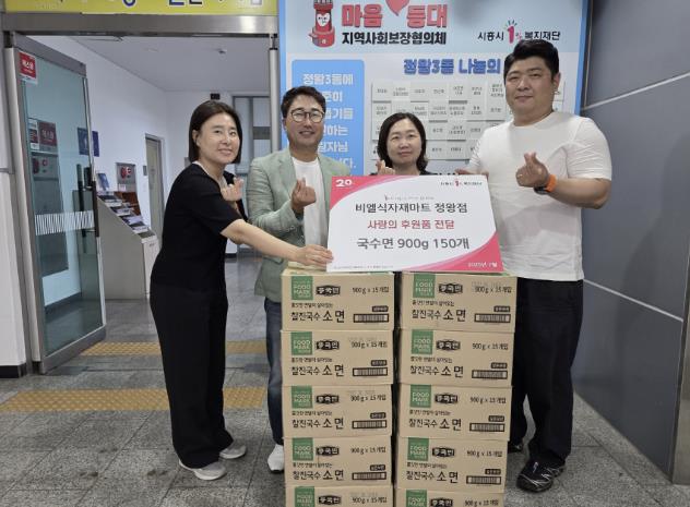같은 날, 정왕3동에 있는 ‘비엘식자재마트 정왕점’도 정왕3동 지역사회보장협의체에 국수면 150인분을 기탁했다. 비엘식자재마트는 합리적인 가격의 식재료를 제공하며 지역 상권을 활성화하는 동시에, 나눔 문화 확산에도 앞장서고 있다.