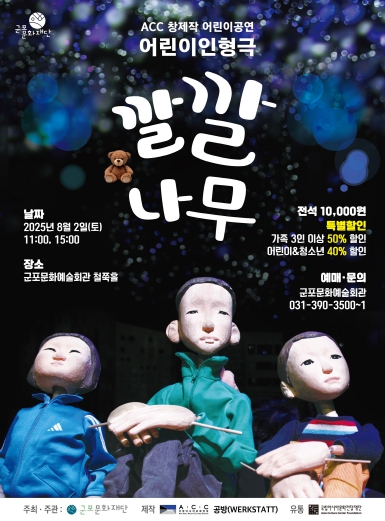 ‘깔깔나무’는 영상과 음악, 인형극이 어우러진 복합장르의 어린이 공연으로, 이야기 속에 담긴 다채로운 인형들의 움직임과 상상력을 자극하는 무대 연출은 어린이뿐 아니라 어른 관객에게도 깊은 여운을 선사할 예정이다.