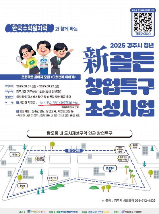 모집 기간은 8월 1일부터 22일까지 22일간이며, 경주시에 거주하는 만 19세부터 39세 이하의 청년 개인 또는 팀 단위(3인 이내)로 누구나 신청할 수 있다.