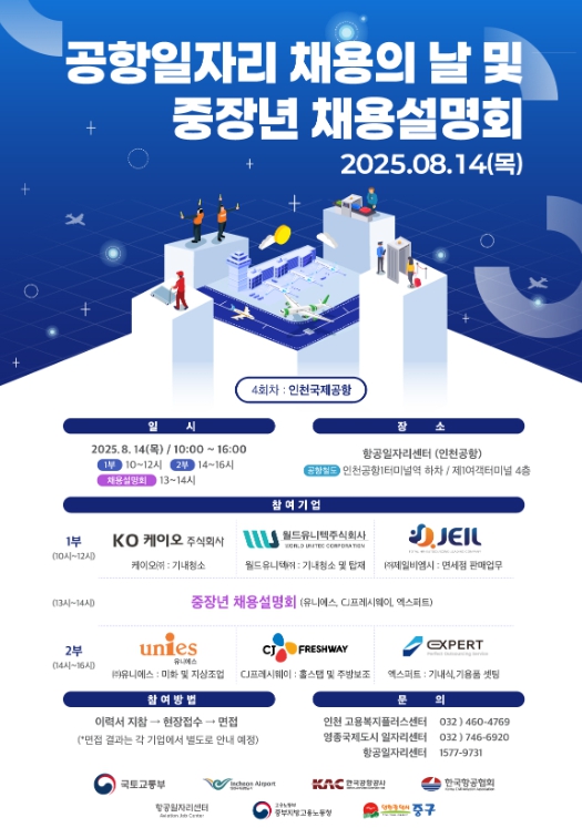 구 관계자는 “항공산업은 인천 중구의 대표 산업”이라며 “관련 분야 취업을 희망하는 구직자들의 적극적인 관심과 참여를 바란다”라고 밝혔다.