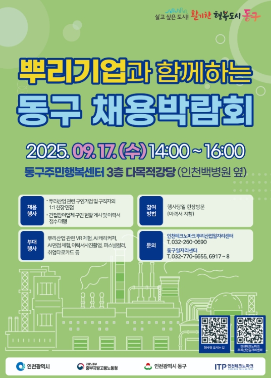 행사는 인천테크노파크 뿌리산업 일자리센터와 인천 동구가 공동으로 주관한다.