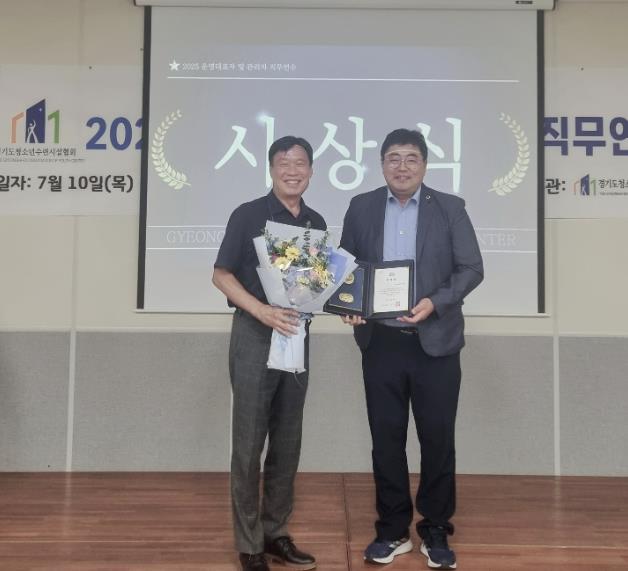 이에 대한 시상식은 지난 10일 경기도청소년수련시설협회에서 주최·주관한 ‘경기도 수련시설 운영대표자 및 관리자 직무연수’에서 진행됐으며, 경기도의회 김진명 의원이 상장을 전달했다.