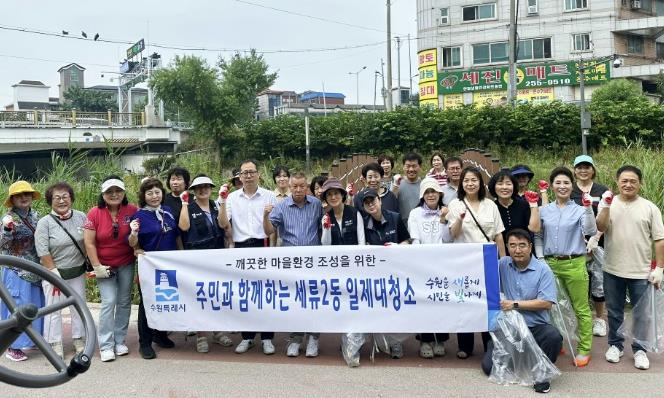 이번 대청소에는 수원천 산책로 및 주변 이면도로, 배수로 등 취약구간을 중심으로 담배꽁초, 쓰레기, 폐기물을 집중 수거하여 여름철 집중호우에 대비했다.