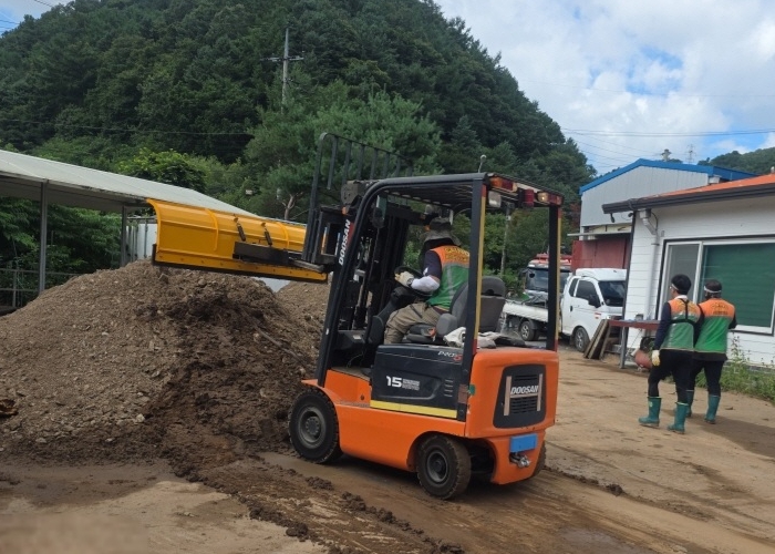 방재단은 포크레인 2대, 특장차 1대, 지게차 1대, 고압세척기, 방역기 등 장비를 동원해, 침수 주택 내 토사물 정리와 세척부터 감염병 예방을 위한 방역 작업 등을 펼치며 복구 활동에 힘을 보탰다.