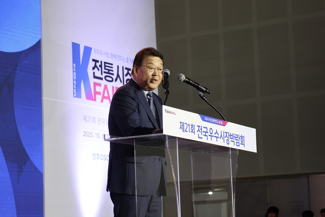 소상공인시장진흥공단(소진공) 박성효 이사장이 ‘제21회 전국우수시장박람회, 2025 K-전통시장 페어’ 개막식에 참석했다. 17일 충북 청주시 오송 OSCO 일원에서 열린 이번 행사는 오는 19일까지 사흘간 진행된다.