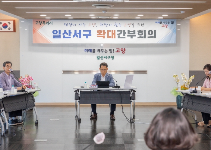 이날 간부회의를 주재한 신영호 일산서구청장과 구청 부서 과장, 동장 등이 참석했다.