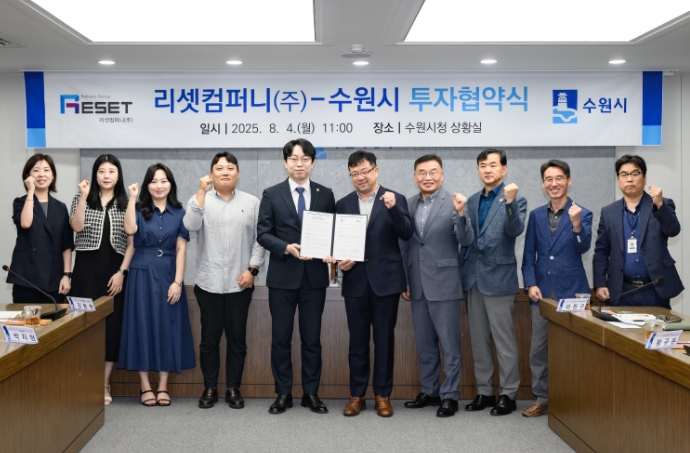 4일 시청 상황실에서 열린 투자 협약식에는 김현수 수원시 제1부시장, 리셋컴퍼니㈜ 정성대 대표 등이 참석했다.