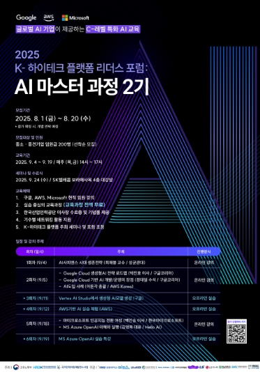 리더스 포럼은 중소·중견기업 임원을 대상으로 한 인공지능(AI) 마스터 과정으로 마이크로소프트코리아, 구글코리아, AWS코리아 등 글로벌 IT 기업의 현직 임원과 성균관대 최재붕 교수 등이 강연자로 참여한다.