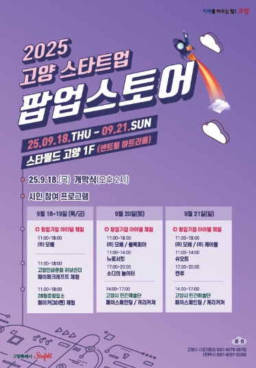 시 관계자는 “고양 스타트업 팝업스토어는 고양특례시 창업기업의 제품과 서비스를 알리고 소비자와의 소통 및 네트워크를 확장해 기업의 성장을 지원하기 위한 행사”라며 “시민들의 많은 관심과 참여를 바란다”고 전했다.