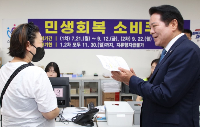 안양시 소비쿠폰 지급 대상은 56만명이며, 관련 예산은 총 1396억원이다. 시는 신청이 집중될 것으로 예상되는 한 달간(7. 21.~8. 22.) 각 동에 기간제 근로자 1명을 추가 배치했고, 시청 직원들도 같은 기간 지정받은 담당동에서 소비쿠폰 신청·지급을 지원하고 있다.
