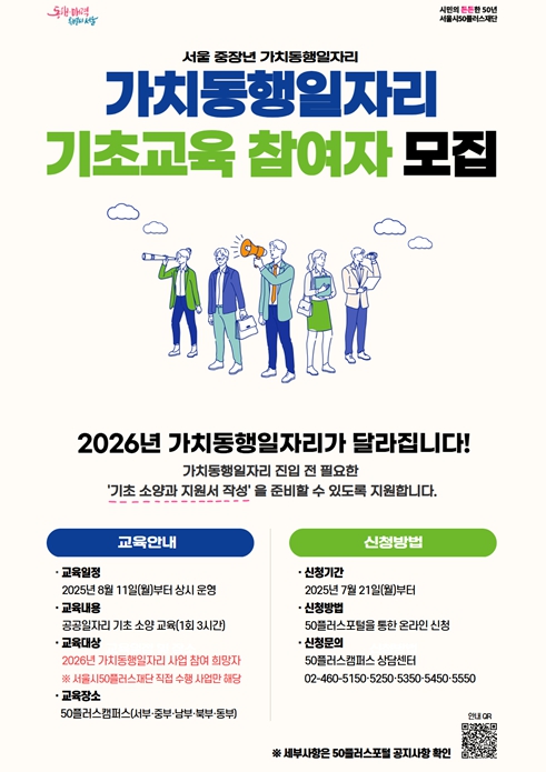 강명 서울시50플러스재단 대표이사는 “이번 필수 기초교육은 공공일자리 참여에 앞서 필요한 기본 소양과 실무역량을 갖출 수 있도록 효과적으로 돕는 첫 관문”이라며, “참여자의 현장 적응력을 높이고 기관과의 이해를 넓혀 더 나은 일자리 경험이 되도록 지원하겠다”고 밝혔다.
