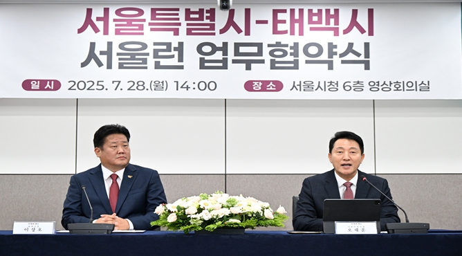 협약식은 28일 오후 서울시청 영상회의실에서 오세훈 서울시장과 이상호 태백시장이 참석한 가운데 열렸다.