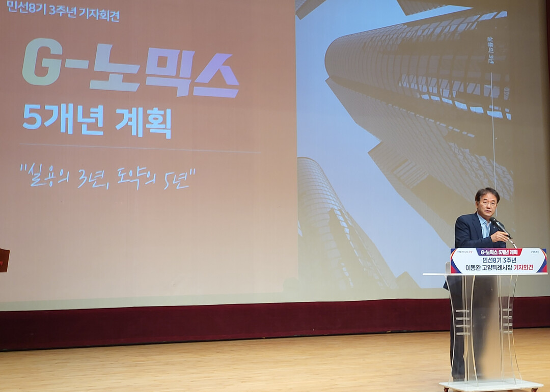 이동환 고양시장은 9일 고양시 문예회관에서 열린 민선8기 3주년 기자간담회에서 "집이 아니라, 산업이 도시를 이끌어야 한다"면서 'G-노믹스 5개년 계획'을 발표하며 산업 중심 도시로의 전환을 본격 선언했다.