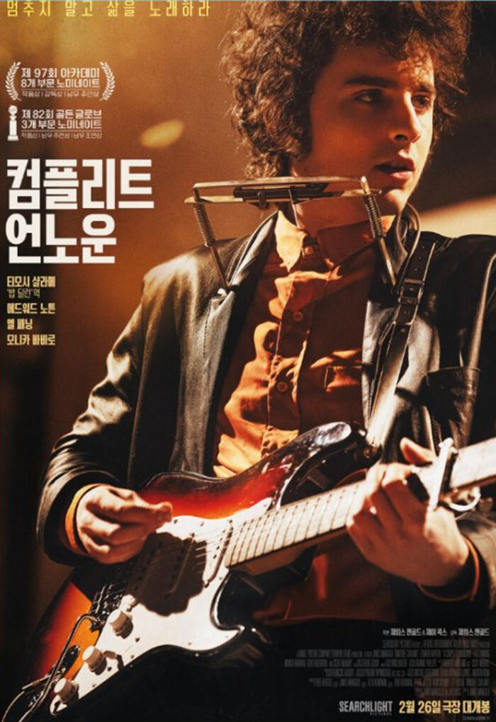 또한 역할을 위해 5년 6개월 간 기타와 하모니카 연주까지 배운 티모시 샬라메가 직접 라이브로 부르는 밥 딜런의 명곡들은 돌비 애트모스로 구현돼 현장에서 듣는 듯한 감동과 울림을 선사한다.