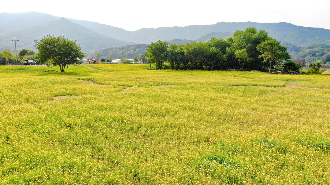유채꽃이 만개한 왕방공원은 제주도를 연상케 할 만큼 화려한 노란 물결로 방문객의 눈길을 사로잡고 있다.