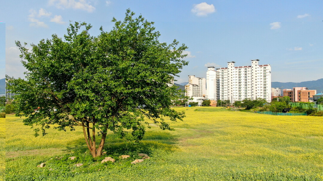 포천동은 지난 3월부터 약 8,000평의 유휴지를 정비해 6,000평 규모의 유채꽃 단지와 산책로를 만들었다.