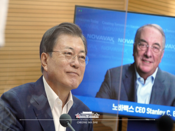 먼저 대통령은 “지난 1년 동안 코로나19로 인해 세계인들이 고통받고 사랑하는 가족을 잃는 슬픔을 겪었는데, 백신이야말로 전 세계인들이 코로나에 맞설 가장 큰 희망이 되고 있다”면서 “노바백스도 조만간 좋은 성과를 낼 예정이라는 반가운 소식을 들었는데 현재 어떻게 진행되고 있느냐?”고 질문했다.