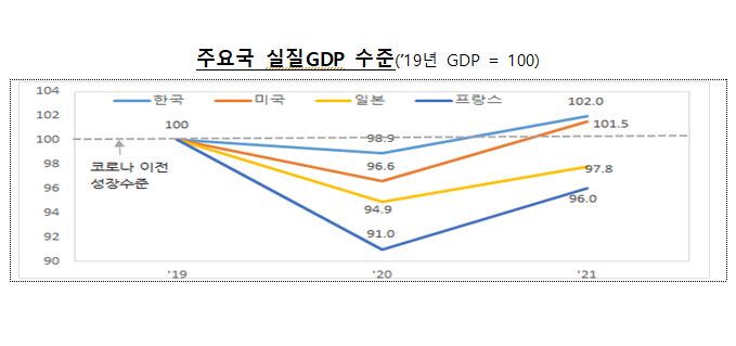 ※ 2020~2021년 합산 성장률 : 2021년 실질 GDP를 2019년(코로나 위기 이전)과 비교