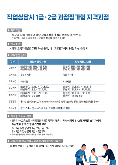 이번 지정기관 선정으로 올해 직업상담사 1급.2급 과정 전문 인력을 각 150명, 100명씩 양성하게 됐으며 과정평가형 제도의 취지를 살려 현장중심으로 차별화된 교육체계로 3월부터 운영할 계획이다.