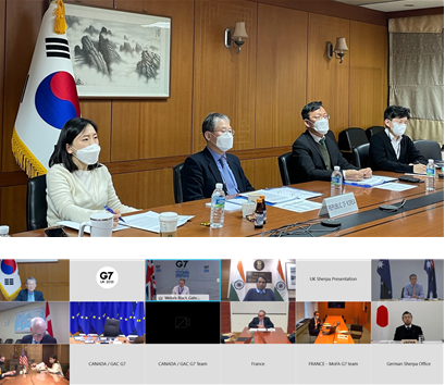 최 대사는 한국이 올해 G7 정상회의의 성공적 개최를 위해 초청국으로서 적극 기여하겠다고 하고, 코로나19 회복과 기후변화 대응을 위한 우리 정책을 소개하는 등 논의에 참여하였다.