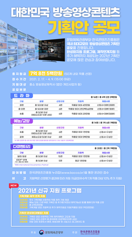 이번 공모전은 국내외 온라인동영상서비스(OTT)의 등장으로 빠르게 변화하고 있는 미디어산업 환경에 발맞춰 경쟁력의 핵심인 우수 콘텐츠를 발굴하기 위해 기획됐다. 특히 올해부터는 기존 텔레비전과 온라인 등 운영체계(플랫폼)별로 나뉘어있던 사업을 하나로 통합해 확대하고, 기획안 완성을 지원하는 프로그램을 도입하는 등 새로운 모습으로 추진한다.