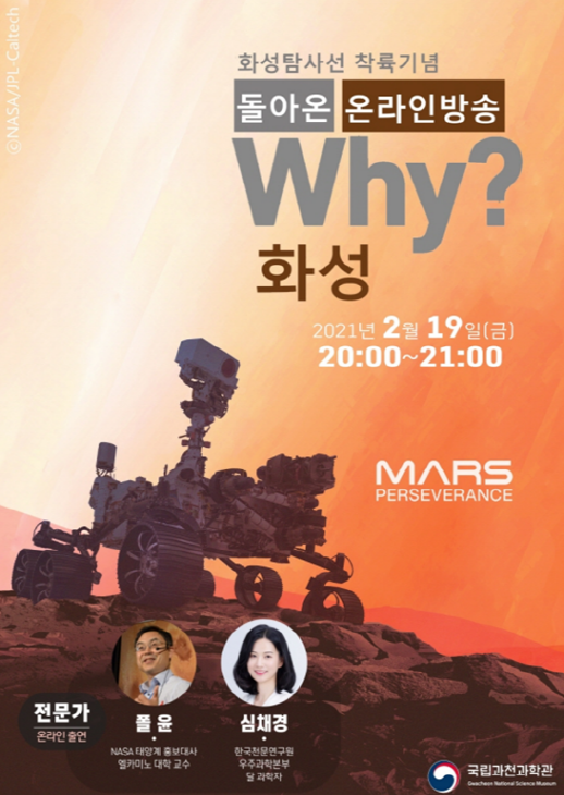 2020년 7월 지구를 출발하여 약 7개월의 긴 여정 끝에 화성에 도착한 아랍에미리트, 중국의 화성탐사선 소식과 함께 우리 시간으로 19일 새벽에 착륙을 시도하는 미국 나사의 화성탐사차 ‘퍼서비어런스(Perserverence, 인내)’의 임무에 대한 대중의 이해를 돕는 과학토크 프로그램이다.