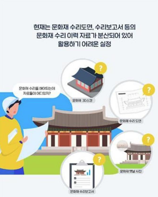 그동안 일반 건축분야의 설계·시공과정에서 주로 BIM(Building Information Modeling)이 적용되어 왔으나 문화재수리분야에서는 정형화하기 어려운 점 때문에 거의 활용되지 못했다. 그러나 3차원 레이저 스캐닝과 컴퓨터 성능 등의 기술발달로 인하여 BIM의 적용 가능성이 높아지면서, 문화재청은 생애주기에 걸쳐 발생하는 수리이력 정보까지 통합하기 위한 HBIM 시스템을 정부혁신 기조 맞춰 건조물문화재의 유지관리 분야에 선도적으로 적용해 나갈 계획이다.