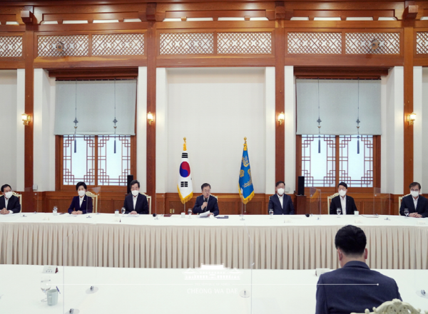 문재인 대통령은 오늘 간담회에서 이번 4차 재난지원금과 관련해 "당·정·청이 최대한 사각지대를 줄일 수 있도록 논의해 달라"고 당부했다.