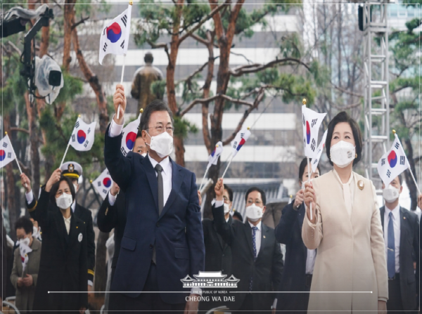 끝으로, 대통령은 “우리는 지금 3·1독립운동의 정신과 민주주의, 포용과 혁신의 힘으로 새로운 길을 개척하고 있으며, 세계는 우리의 발걸음에 주목하고 있다”면서 위기와 역경 속에서 역사의 반전을 이룬 선열들을 기억하며 앞으로 나아갈 것이라고 강조했다.