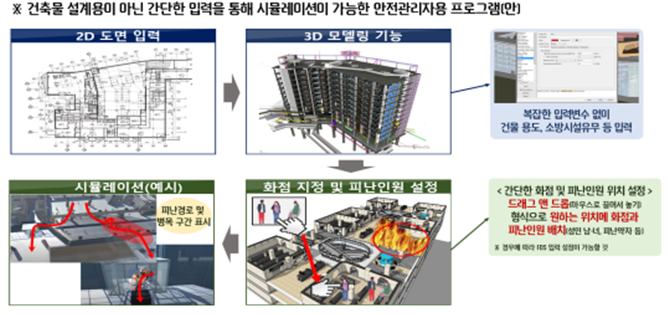 특히 소방안전관리자용 화재 초기대응력 향상시스템 분야는 화재 초기에 소방안전관리자의 신속한 의사 결정이 중요한데 기존의 이론 교육과 상황 반복 훈련만으로는 다양한 상황에 대한 대처에 한계가 있어 보다 실질적인 훈련을 위한 시스템을 구축하는데 중점을 두었다.