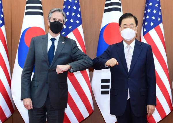 정 장관과 블링컨 장관은 북한・북핵문제가 시급히 다루어야 할 중대한 문제라는 데 인식을 같이 하고, 한반도의 완전한 비핵화 및 항구적 평화 정착에 진전을 가져오기 위한 양국 간 협력방안에 대해 심도 있게 협의하였다.
