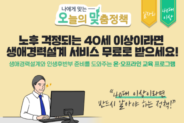 노후 걱정되는 40세 이상이라면 생애경력설계 서비스 무료로 받으세요!