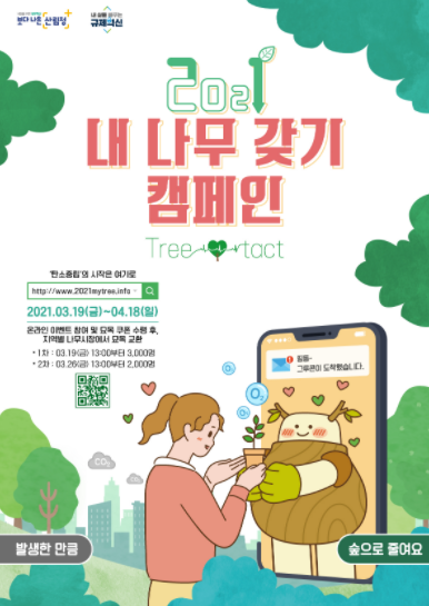 올해「2021 내나무 갖기 행사」는 2회에 걸쳐 총 5,000매의 그루콘을 선착순 배부할 계획이며, 참여기회를 골고루 주기 위해 1인 1회 참여만 가능하다.