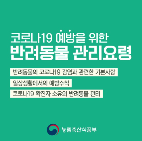 반려동물이 코로나19 확진자와의 접촉으로 감염되는 사례는 드물게 확인되고 있지만, 반려동물에서 사람으로 전파된다는 증거는 없음