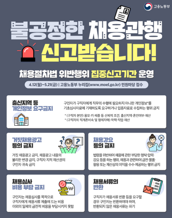 [채용절차법 위반행위 집중신고기간 운영]