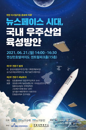 이어 방효충 KAIST 교수의 사회로 권현준 과기정통부 거대공공연구정책관, 원종대 국방부 전력정책관, 고상휘 ㈜한화/방산 상무, 김이을 ㈜쎄트렉아이 대표, 안형준 STEPI 연구위원 등 국내 우주산업 관련 전문가들의 토론도 함께 진행된다.