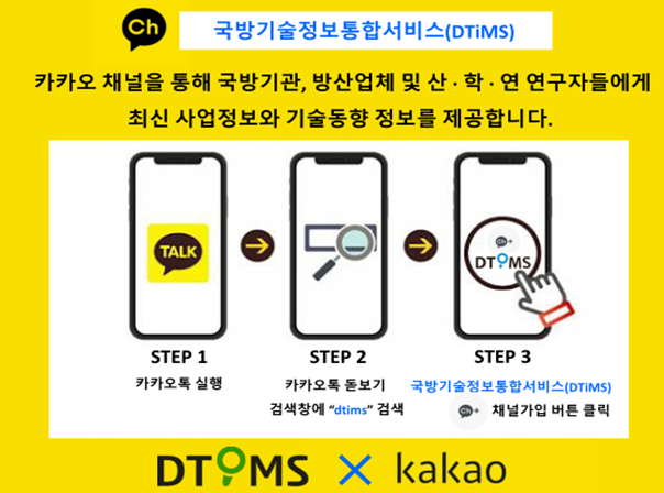 본 채널은 카카오톡 어플을 통해 간단하게 가입할 수 있는데, 국기연은 채널 가입자들에게 국방분야 연구개발 과제와 방산지원 사업정보 등 신착소식을 푸시 알림 서비스로 제공할 계획이다. 이에 따라 방산업체 및 산·학·연 연구자들은 국방 분야 연구 개발 과제와 방산지원 공모 과제사업 정보를 보다 쉽게 접하고, 개발 또는 공모 과제 참여율도 높아질 것으로 기대된다.