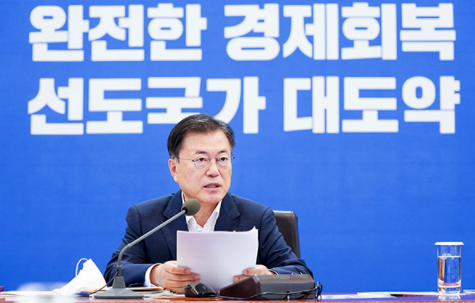 문 대통령은 “정부는 ‘2021년 경제정책방향’에서 ‘빠르고 강한 경제 회복’과 ‘선도형 경제로의 대전환’이라는 두 가지 목표를 세웠고, 상반기에 비교적 성공적으로 그 토대를 닦았다”고 평가하고 “하반기에는 국민이 체감할 수 있는 성과를 거둬야 한다”고 주문했다.