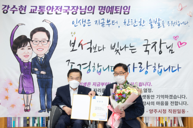 강 국장은 퇴임사를 통해 “무탈하게 공직생활을 마무리할 수 있도록 깊은 배려와 관심을 보내준 이성호 양주시장님과 동료, 후배 공무원들에게 감사를 인사를 전한다”며 “오로지 시민을 위해 봉사할 수 있었던 36년여의 시간을 잊지 않고 퇴임 후에도 공직에서 쌓은 경험과 노하우를 바탕으로 양주 발전에 힘을 보태겠다”고 밝혔다.