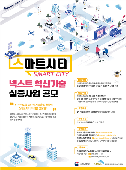 공모에 참여를 희망하는 기업은 국토교통부 누리집, 스마트시티 융합 얼라이언스 누리집에서 정보를 확인할 수 있으며, 상세한 정보를 제공하기 위해 온라인 설명회(8.5)도 병행할 계획이다.