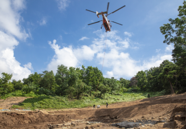 이번에 헬기로 이송되는 목부재 유물들은 시간이 지남에 따라 부후(腐朽)가 심화되는 유기물이라서 적시에 과학적인 보존처리가 필요하지만 무게가 약 4.5톤이나 되고, 출토장소 또한 높은 산위에 있어 차량 진입이 어렵고 유물 이송을 위해서는 부득이 산림을 훼손해야 하는 상황이었다.