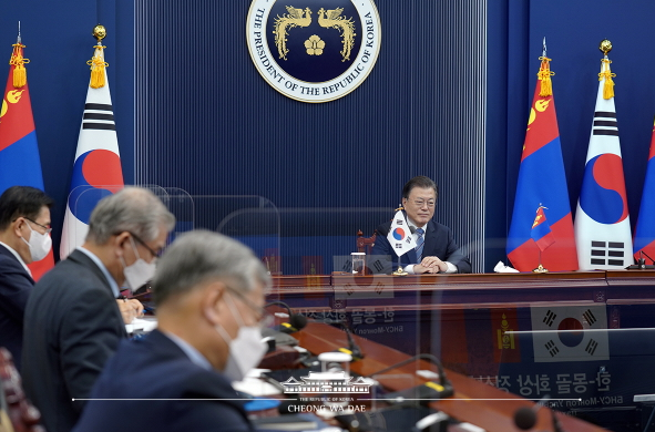 문 대통령은 “지난해 9월 유엔 총회 계기에 제안한 동북아 방역·보건 협력체에 몽골 정부가 적극 참여해 준 데 사의를 표하고, 특히 몽골은 ‘울란바타르 대화’를 통해 역내 대화에 북한을 참여시키는데 주도적 역할을 수행한 만큼, 앞으로도 적극적인 역할을 해 주기 기대한다”고 말했다.